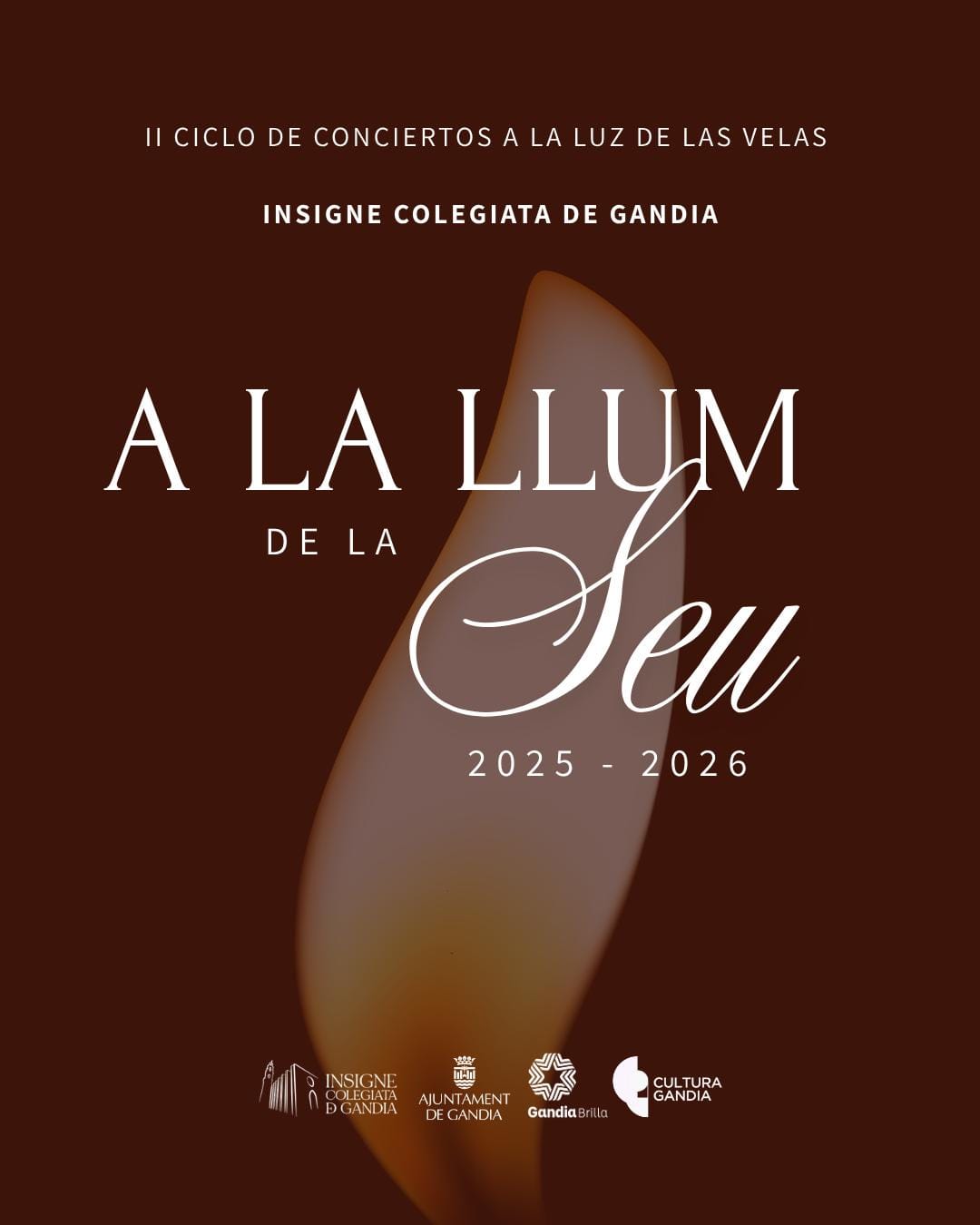 La Insigne Colegiata de Gandia se prepara para acoger la segunda edición (2025) del ciclo de conciertos A la llum de la Seu, una propuesta musical y visual que convierte este emblemático espacio en un escenario de sensaciones. Serán cuatro veladas únicas en las que la arquitectura gótica del recinto se realzará bajo la cálida iluminación de cientos de velas.